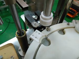 Kai butelis pateks į šią stotį, dangtelio galvutė jį automatiškai prisuka.