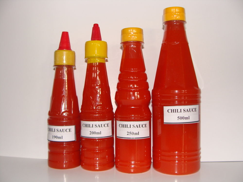 Kai kurie butelių pavyzdžiai pakuojami šioje gamybos linijoje
